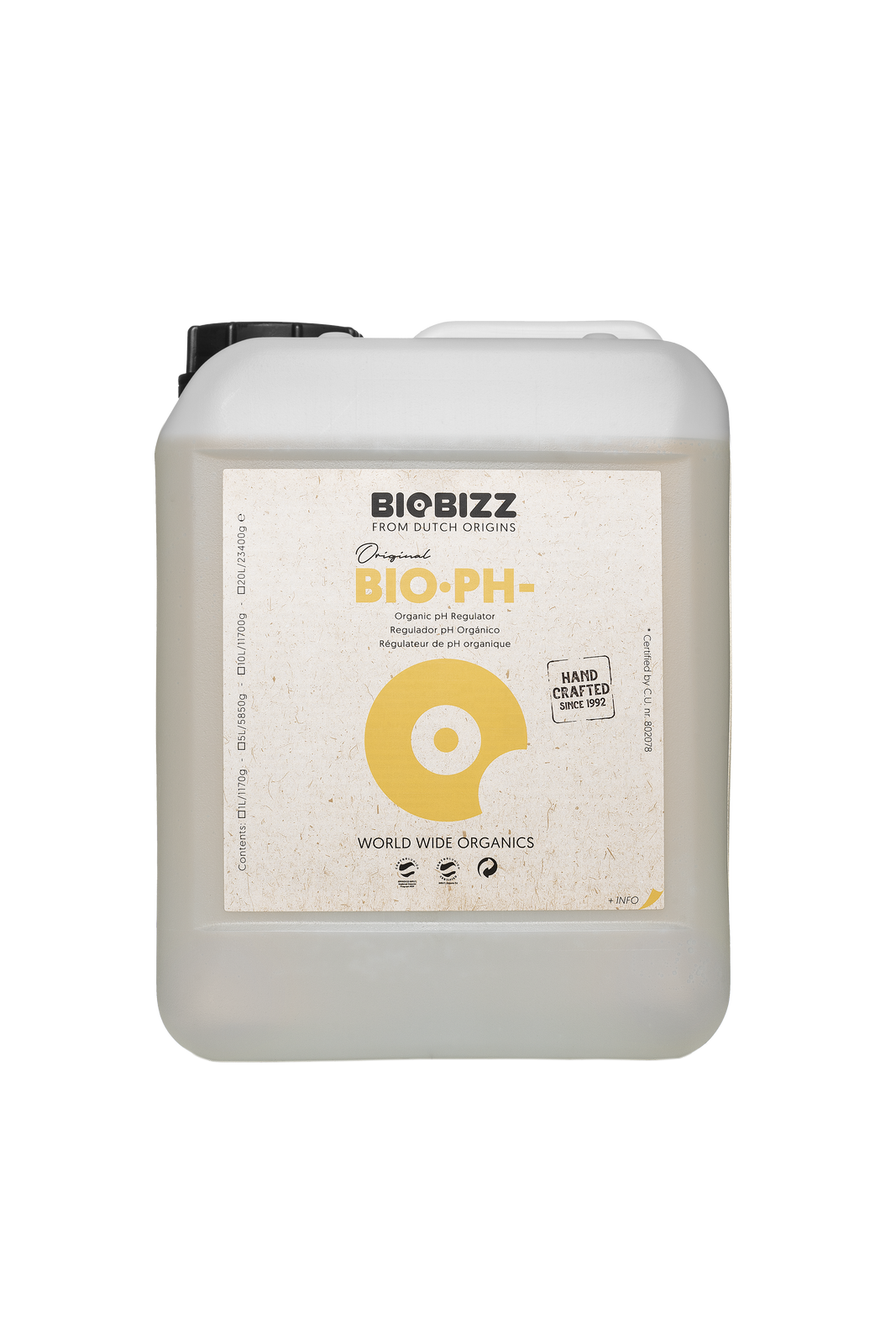 BIO-PH- to najnowsza pozycja z rodziny nawozów i dodatków marki Biobizz. BIO-PH- został zaprojektowany specjalnie dla sektora rolnictwa ekologicznego. Jest to preparat na bazie wodnego roztworu kwasu cytrynowego, występującego naturalnie w owocach cytrusowych. pozyskiwanych ze źródeł naturalnych. Korekta pH jest niezbędna, aby rośliny mogły wchłonąć maksymalną ilość składników odżywczych. Naturalny BIO-PH- umożliwia szybką regulację pH dowolnego rodzaju podłoża i do każdego rodzaju upraw. BIO-PH- nie uszkadza mikroorganizmów poprawiających właściwości podłoża, można go więc stosować w parze z mikoryzą czy mieszanką bakterii glebowych. BIO-PH- został zaprojektowany tak, aby idealnie współpracować z odżywkami marki Biobizz i może być stosowany przy każdym podlewaniu. Nadaje się do stosowania zarówno w okresie wzrostu, jak i kwitnienia.