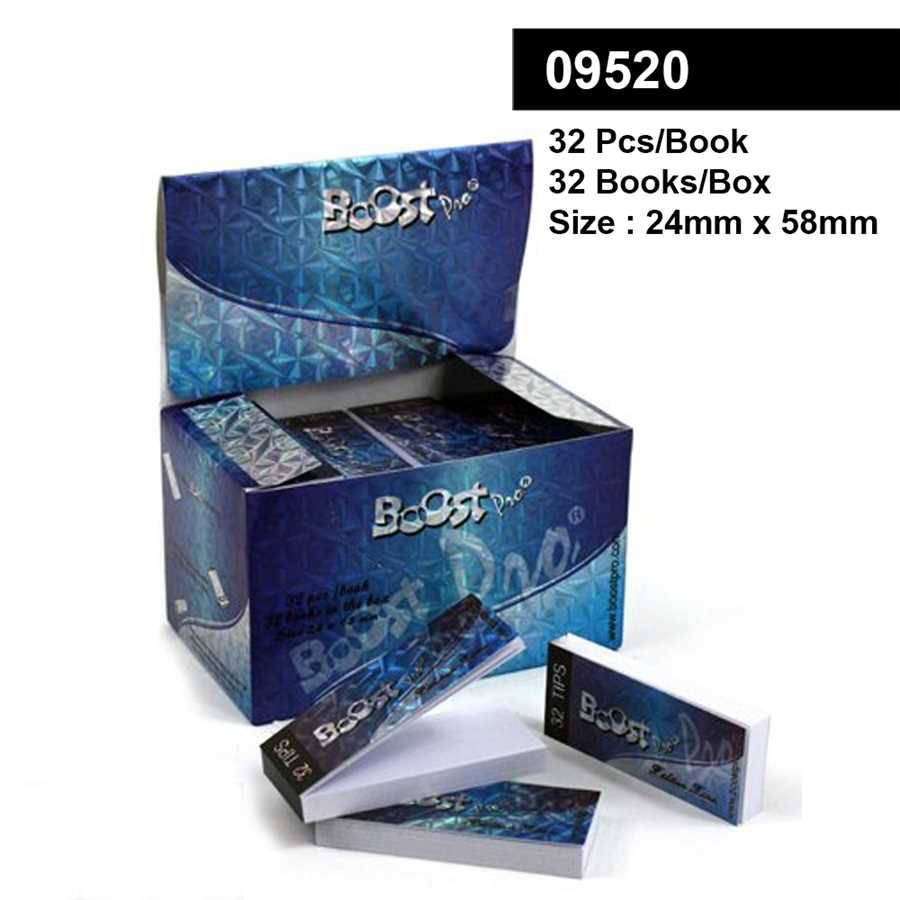 – ustniki do skrętów BOOST PRO – 32 listki w książeczce – wymiary książeczki: 58x24mm – twardość średnia – duża odporność na rozmakanie